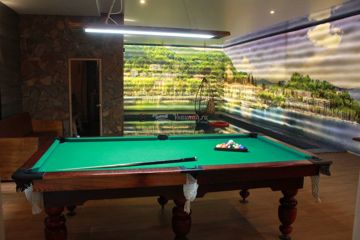 Общая вместимость: 16Тип парной: финская парная.Услуги: бассейн 6х4м с температурой воды +30С, бильярд, ТВ, муз. центр, комната отдыха