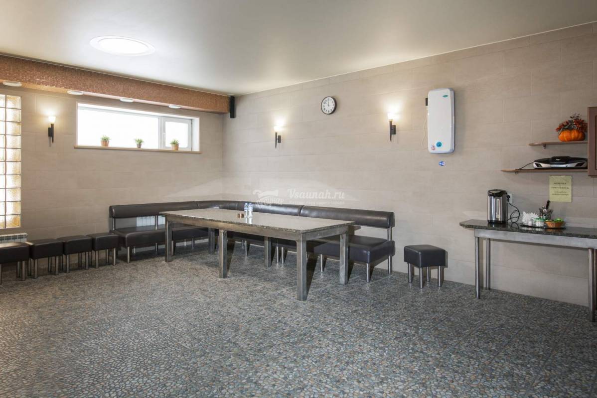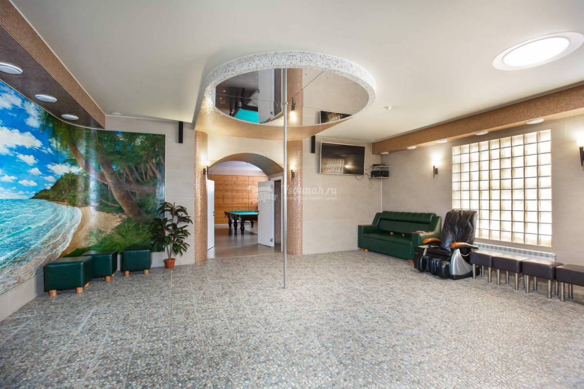 Зал Лагуна. просторный современный зал с большим бассейном 5,5 х 9 метров, в которм есть15 метровая водная горка-труба, противоток и сидячие места с гидромассажем. Финская парная и турецкий хамам. Бильярд и настольный теннис. Просторная зона отдыха с вместительным столом (1х3 метра) и мягким диваном для большой и весолой компании, с кухней со всем необходимым. Два душа, раздевалка и туалет.