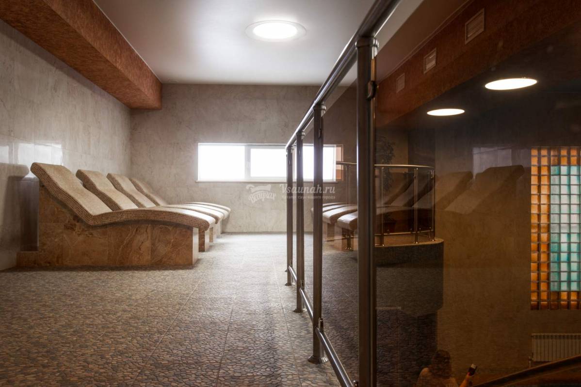 Греческий зал. Большой просторный номер отдыха из 12 человек. Имеется большой бассейн 5х7 метров, который оснащен противотоком, водопадом и гейзером. В номере есть финская парная, а также настоящий просторный турецкий хамам.Большая зона отдыха с кожаным диваном и большим столом, спутниковое ТV, а также кухня и комната для релаксации. Просторное джакузи с гидромассажем, душевые, обливная бочка с холодной водой. Также имеется бильярдная комната и массажное кресло.